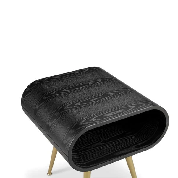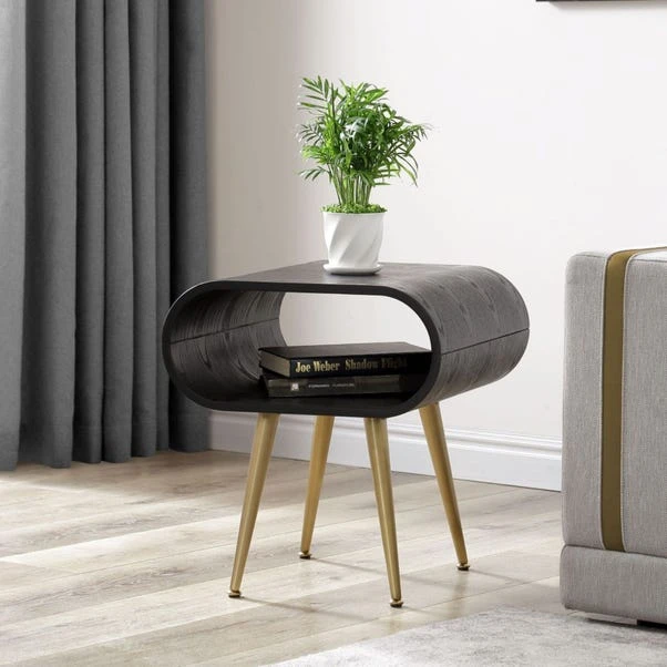 The Auckland Side Table features a real wood veneer finish with contrasting metal legs and open storage space. Adjustable feet provide stability, making it both functional and stylish.