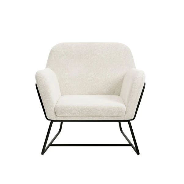 The Charles Boucle Armchair combines elegance with a sleek matt black frame and ivory boucle fabric. This sophisticated occasional chair enhances your space with comfort and style, seamlessly fitting into any decor with its neutral colour palette.
