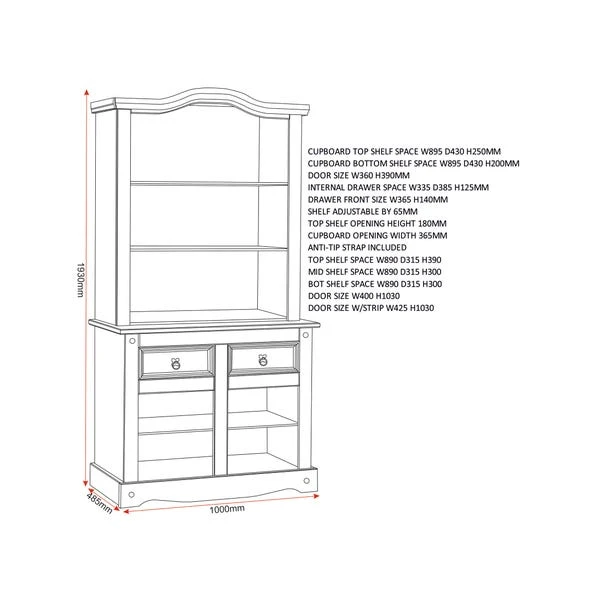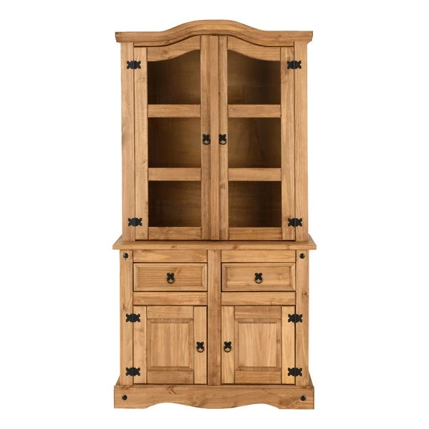 This beautiful buffet unit in distressed waxed pine is the perfect piece of furniture to finish off your decoration. It has two shelves encased behind stylish clear glass doors, making it the perfect platform to display your favourite objects on. Also featuring two drawers below are the perfect solution. There are also two spacious cupboards at the bottom. With the traditional look, this unit is ideal for any living space.