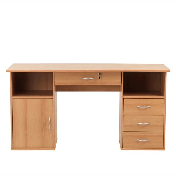 The Dallas is a traditional style desk boasting a wealth of storage space, in a beautiful Beech effect with chrome handles. It features a central lockable drawer, along with 3 additional stationery drawers, storage cupboard and 2 storage compartments, making the Dallas both functional and attractive.