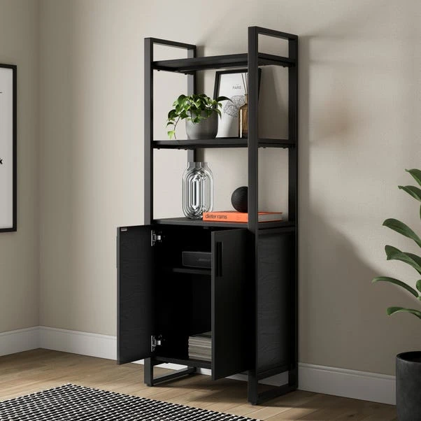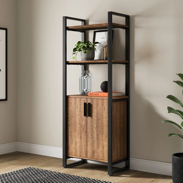 Add a touch of industrial style to your living space with the Freddie Bookcase. Featuring a sturdy steel bottom frame, 3 display shelves, and a roomy storage cupboard, this versatile piece can be used in the living room, kitchen, study, or hallway. Assembly is easy with illustrated instructions and all the hardware provided.