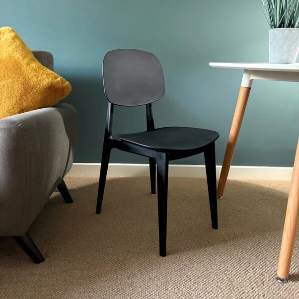 A stylish and contemporary addition to your dining area, this lightweight yet durable plastic dining chair is both easy to clean and stackable. It offers excellent comfort and support, while its colour adds a sleek retro look to any interior, making it perfect for updating your dining space.
