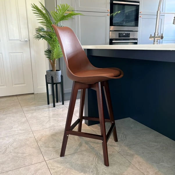 Part of a collection inspired by contemporary designs, this bar stool is perfect for long, leisurely meals or time spent reading at a kitchen counter. The shaped seat and back, combined with a soft seat pad, ensure added comfort, while the four squared, natural beech wood legs provide sturdy support. The seat pad is easy to wipe clean, making this bar stool a practical choice for any contemporary home.
