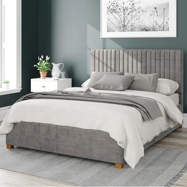 Bring a striking focal point to your bedroom set up with this contemporary style ottoman bed from the Grant range. Manufactured in the UK, this velour fabric bed is hand upholstered in a range of striking colours, includes a modern vertical headboard design and deep padding for added comfort. It comes with quality spring slats that provide added support for a peaceful night’s sleep and the large storage area is designed to provide ample space for all your bedding and accessories. The ottoman design can be easily accessed with gas lift pistons, so once the mechanism is open it will hold in place and a fabric dust protection sheet is there to keep your belongings clean and tidy. Complete with solid hard wood feet to provide a stable foundation, they finish the look and ensure the bed remains sturdy and secure, while also adding a touch of elegance to the overall design.