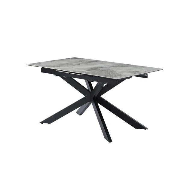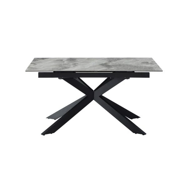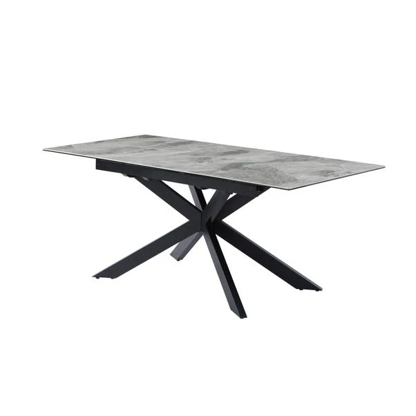 The Indus Valley Athena 6 Seater Extending Dining Table offers the best of both worlds with its grey ceramic effect finish and X design iron legs. This modern table can comfortably seat six and features a simple drop-in leaf mechanism, extending it from 150cm to 190cm. This provides additional seating space for special occasions or larger gatherings, all while maintaining a sleek and stylish aesthetic.