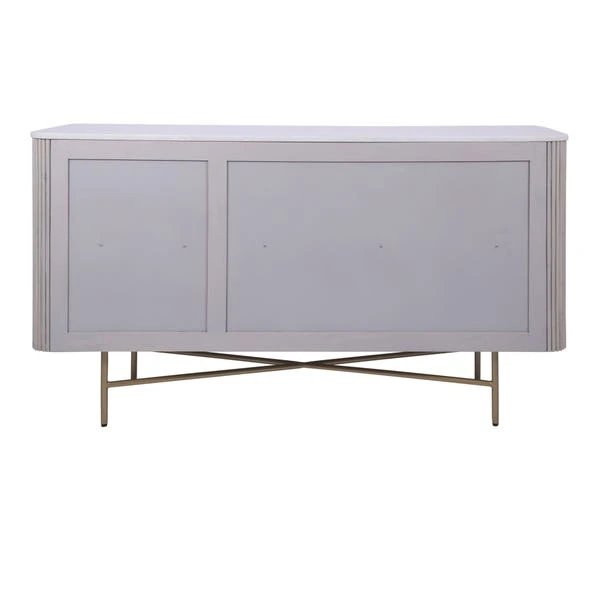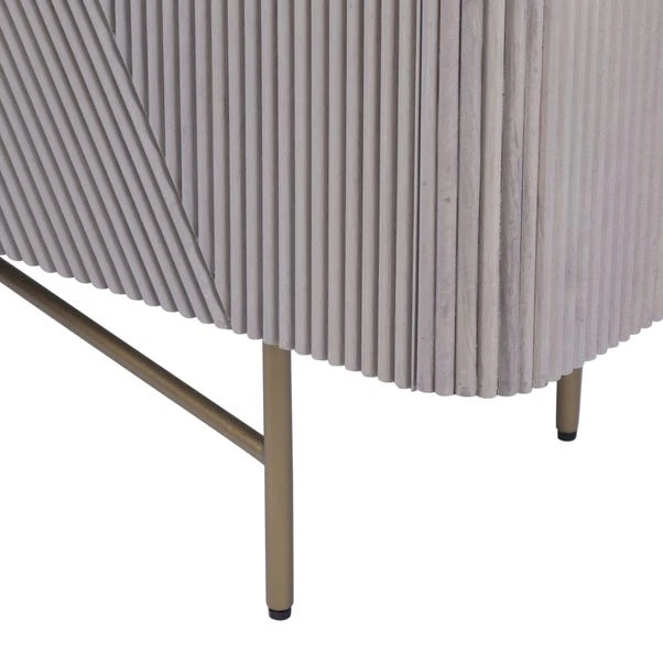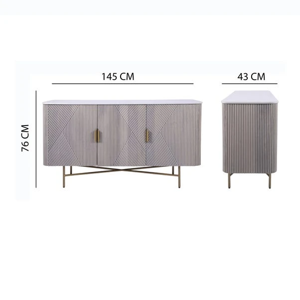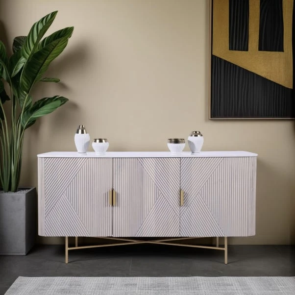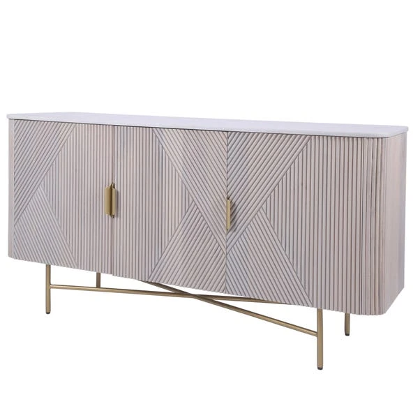 With a perfect blend of style and practicality, the Cleo 3-Door Sideboard offers ample storage while enhancing the aesthetic of any space. Its solid mango wood construction is highlighted by a beautifully crafted vertical ribbed design, adding an element of texture and visual interest. Topped with smooth marble, this sideboard exudes understated luxury, while the three-door storage compartment provides an ideal solution for keeping clutter at bay.