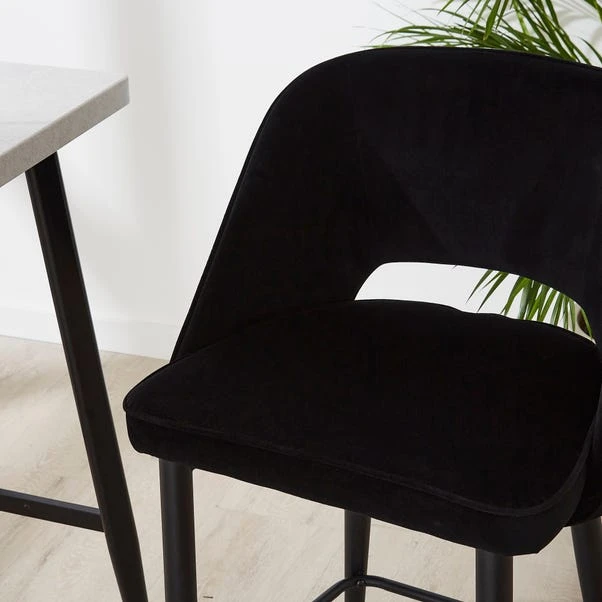 Modern with elegance, the Lillia Velvet Bar Stool has been crafted with a velvet finish in a gorgeous colourway to match any kitchen and dining decors and is filled with a comforting foam filling. Complete with sleek black coated metal legs for a chic finish.