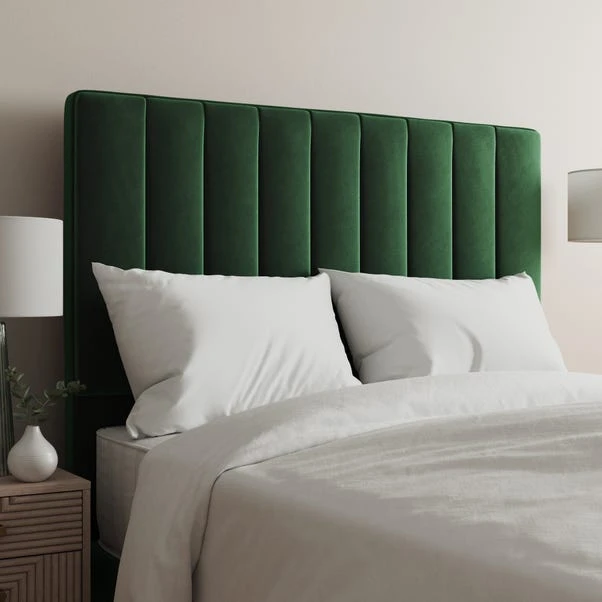 This velvet vertical headboard is a full height floor standing headboard with a classic elegant design.