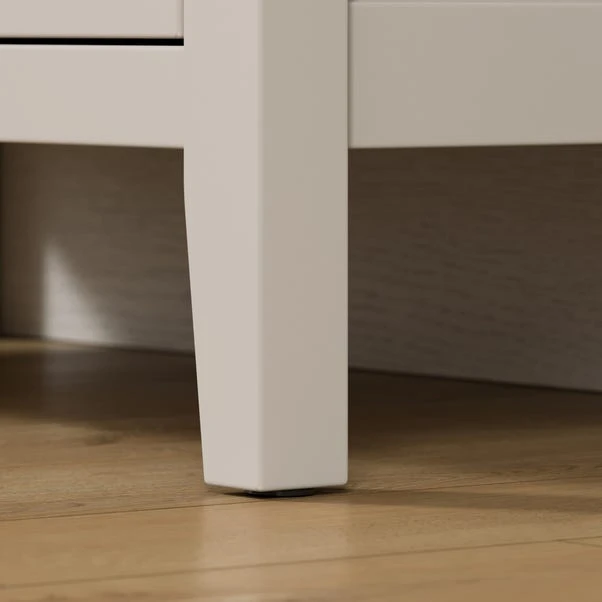 Fashioned in a choice of modern colourways, this chest of drawers features three large drawers, with full extension runners and brushed grey metal handles.