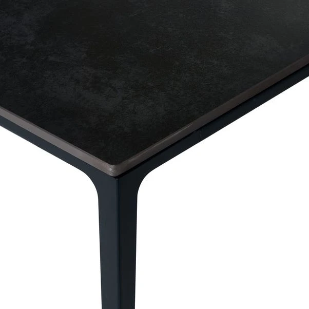 This dining table elevates your dining moments in style, offering a perfect fusion of sophistication and modernity. An exquisite piece featuring a stunning white marble sintered stone top, adding a touch of opulence to your dining space. Supported by a metal frame with sleek black legs, it combines sturdy support with a contemporary edge.