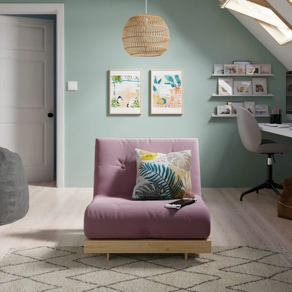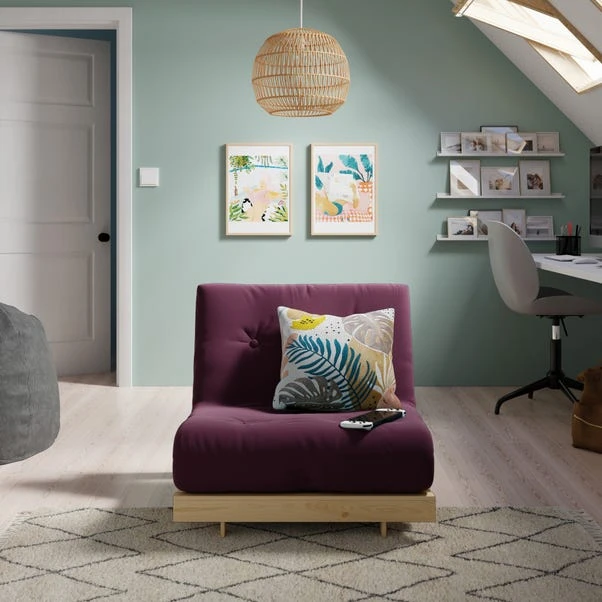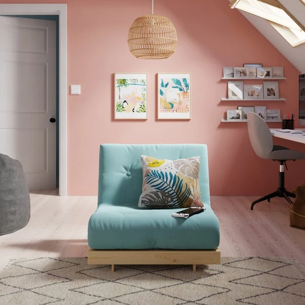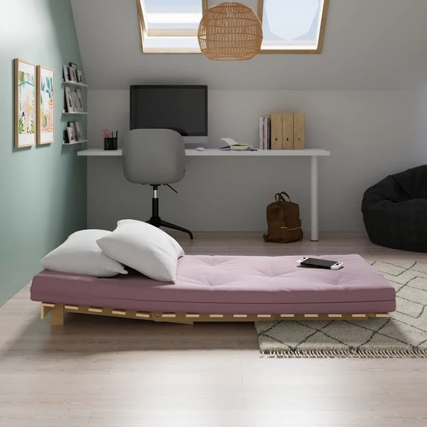 A handy, versatile futon for the modern home in a timeless design to complement any decor. The Mito Single Futon features a great space saving solution for where space is at a premium. This Futon folds out easily from a seat to a comfortable single bed for guests. The Mito Single Futon is constructed from solid pine and comes complete with a quality fibre blend button design mattress.