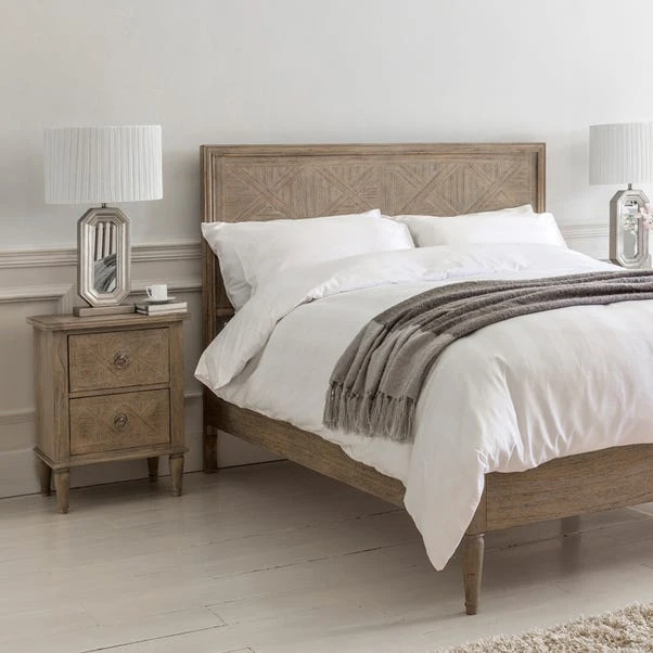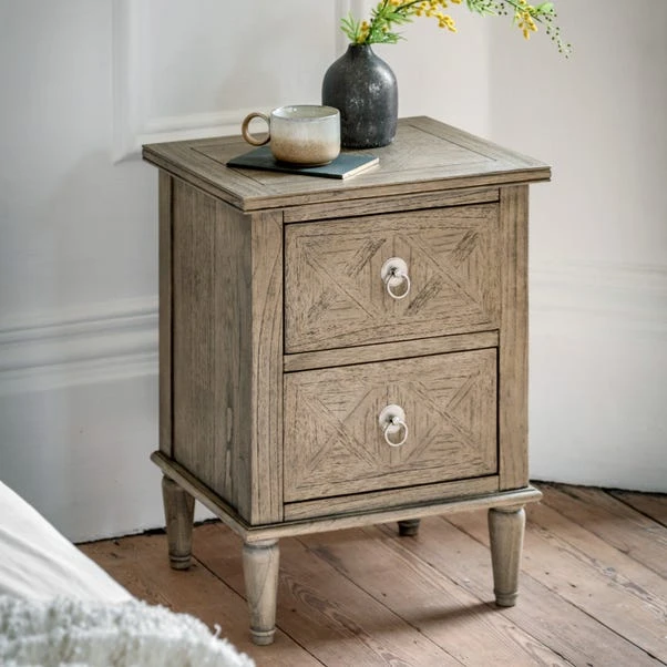 The Modesto 2 Drawer Bedside Table, crafted from Mindy Ash wood brushed to create natural ageing, giving a nod towards French Colonial style. With two drawers and the flexibility to equally suit modern interiors, this bedside table comes with matching items for a cohesive bedroom ensemble.
