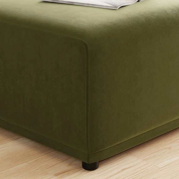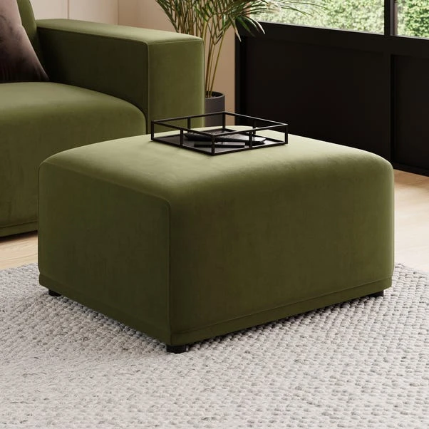 This Modular Cruz Velvet Footstool is a stylish and elegant addition to any living space, and comfortably doubles up as extra seating when needed. The stunning velvet upholstery feels luxurious and comes in a variety of on-trend colours to suit your taste. This footstool can be added on as a chaise configuration as part of the set for a relaxing place to put your feet up and unwind, however is stunning and versatile enough to be used on its own alongside other existing furniture in your home.