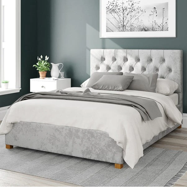 Rely on this contemporary ottoman bed from the Olivier range to create a statement look in your bedroom that offers an effective storage and sleeping solution. Hand upholstered with a velvet fabric in a range of bold and elegant colours, the Chesterfield inspired headboard is made with deep padding and statement deep buttoned details for a timeless look. Manufactured in the UK, it features quality spring slats that provide added support for a peaceful night’s sleep and the large storage area is designed to provide ample space for all your bedding and accessories. The ottoman design can be easily accessed with gas lift pistons, so once the mechanism is open it will hold in place and a fabric dust protection sheet is there to keep your belongings clean and tidy. Complete with solid hard wood feet to provide a stable foundation and ensure the bed remains sturdy and secure, they also add a stylish touch to the overall design.