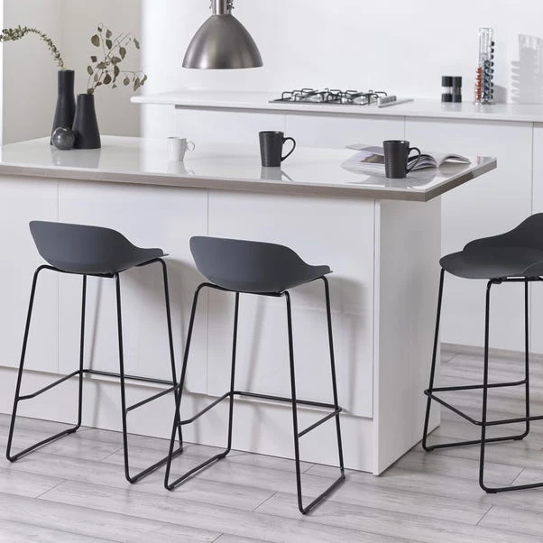 Featuring flowing metal legs and an elegant curved seat with a low back, these stools create a chic and contemporary look in any space. Whether placed at a kitchen island or a home bar, these bar stools offer a versatile and stylish seating solution for entertaining guests or enjoying a casual meal.