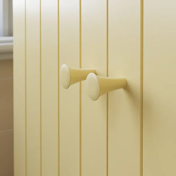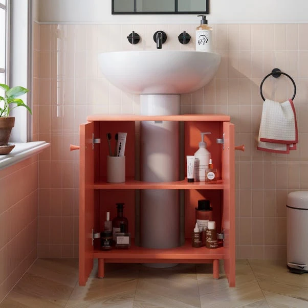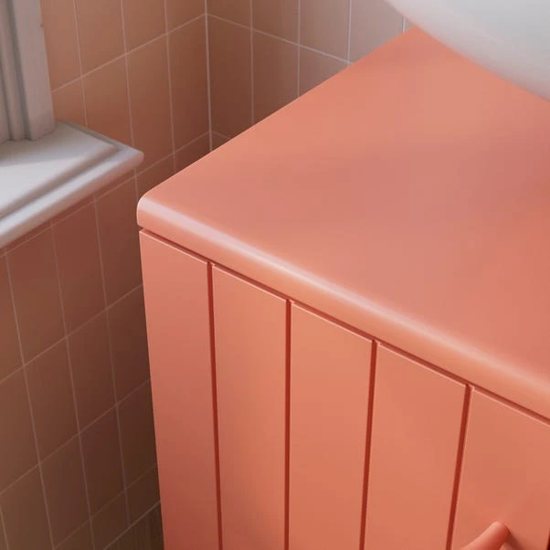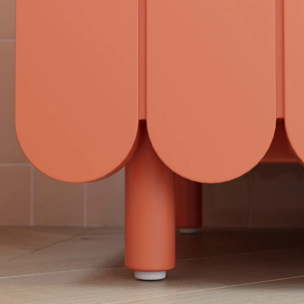 This under sink unit is a delightful addition to your bathroom. Its soft-closing doors and hinges ensure smooth and quiet operation. The painted finish, charming, scalloped details at the bottom, and groove door fronts offer a soft modern style. With an adjustable internal shelf, this unit is perfect for keeping your bathroom essentials neatly organised.