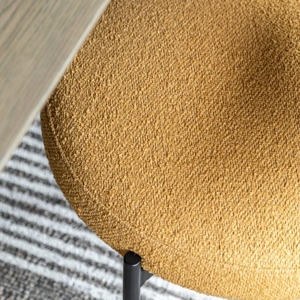 This pack of two exquisitely crafted chairs is designed to infuse your room with style and sophistication. The gracefully curved back echoes the shape of the round seat, ensuring both comfort and elegance. Complemented by sleek black metal legs and frame, these chairs effortlessly enhance your decor with a modern flair.