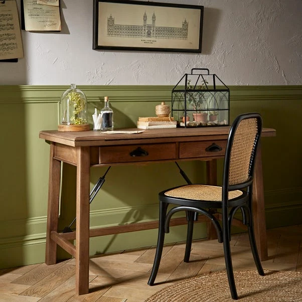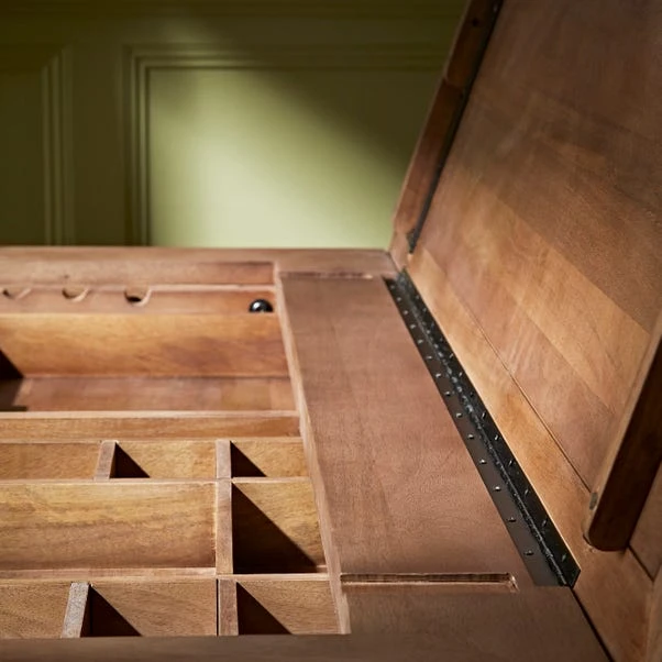 This beautiful, hand assembled Draftsman Desk has been made with traceable mango wood that produces a beautiful grain and warm hue, and finished with replica cast handles. This desk has an easily adjustable worktop and can be height adjusted to 3 working heights. With drawers inspired by the historical specimen trays found at the Museum, this Lift Top Draftsman Desk is the perfect place to exhibit your most precious items and is sure to look beautiful in any home.