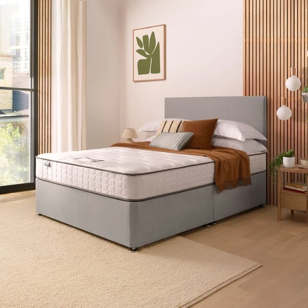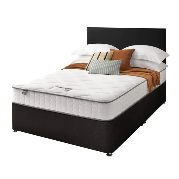 This all-inclusive divan set seamlessly marries functionality and elegance, featuring , a refined headboard, and an extraordinary 800 pocket mattress. Silentnight’s cutting-edge Mirapocket technology takes centre stage, providing 800 individual pocket springs for unparalleled comfort, support, and pressure relief. The zoned Mirapocket support system ensures even weight distribution, promoting effortless movement and enhancing spinal alignment, while the edge-to-edge support creates a haven for an undisturbed night’s sleep. The mattress’s responsive pocket springs adapt to your body weight, delivering a luxurious blend of comfort and personalised support. Plump filling layers and a sumptuously soft knitted mattress cover add to the lavishness, with a hypoallergenic finish for peace of mind. The medium-firm comfort rating caters to those who transition between back and side sleeping positions.