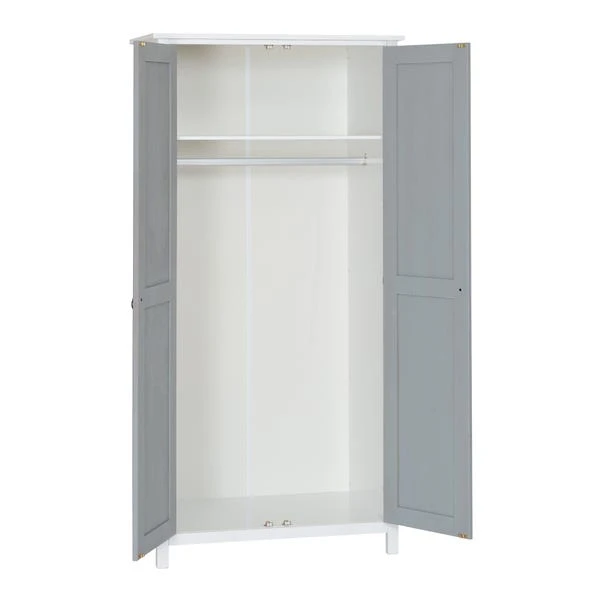Offering a modern twist on a timeless design, the Vermount double wardrobe would make a great addition to any bedroom. As practical as it is stylish, this self-assembly wardrobe features a generously sized hanging space and shelf space and is finished with grey distressed doors and vintage style ring pull handles.