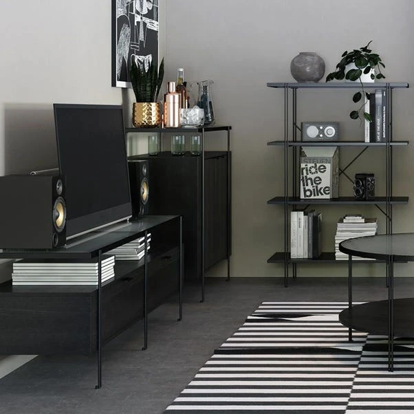 - Black wood effect finish