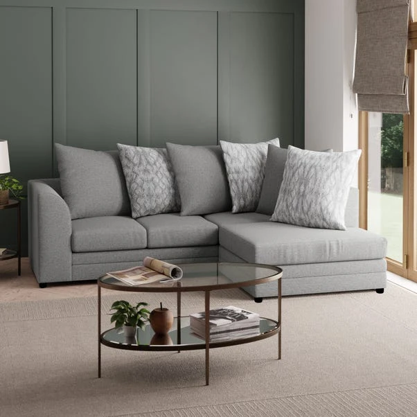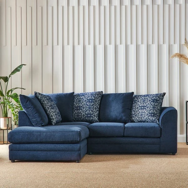 Lie back and relax on the Washington Chenille Combo Chaise Corner Sofa, featuring a soft chenille upholstered finish and 6 comfortable, chunky scatterback cushions. The stylish, compact design seats 4 and is great for smaller homes and apartments.