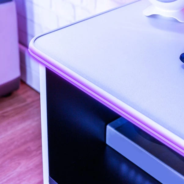 Create the ultimate viewing platform for your TV to sit upon with X Rocker’s Carbon Tek TV Media Cabinet with innovative Neo Fibre LED lighting technology. Designed to perfectly sit or stand the tallest gaming consoles including PS5 and Xbox series, the cabinet also features open shelving and a cupboard space for store accessories behind the door so this versatile storage will help to clear clutter and maintain a clean look for your space. Enhanced with high tech functionalities, the innovative LED lighting provides a unique and colourful glow to your bedroom set up with multi-colour options to choose from, powered by a built-in control panel that connects via USB Type-A cable to your power supply (wall adapter or power bank and remote control not included).